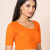Stylish Design: Aangifabric Round Neck Dobby Cotton Lycra Stretchable Elbow Sleeve Readymade Saree Blouse is designed for contemporary elegance.