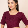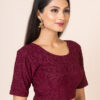Stylish Design: Aangifabrics Round Neck Dobby Cotton Lycra Stretchable Elbow Sleeve Readymade Saree Blouse is designed for contemporary elegance.